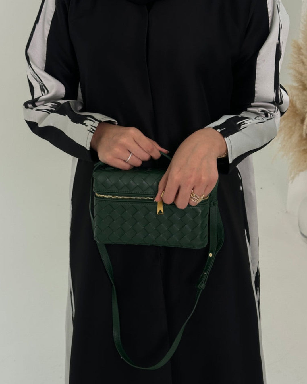 Le sac Aria, à la pointe de la mode avec une touche de charme rétro, est fabriqué en cuir PU de haute qualité avec une texture tissée élégante.