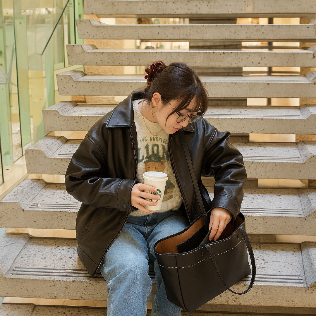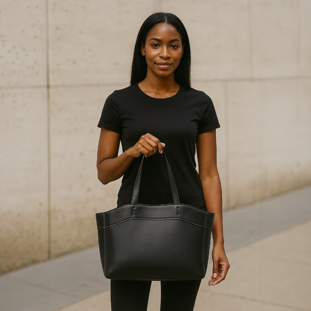 Notre sac Emma est fabriqué en cuir végétal de haute qualité, alliant style décontracté et durabilité. Conçu pour être suffisamment spacieux, il accueille facilement vos essentiels : ordinateur portable, maquillage et accessoires quotidiens.