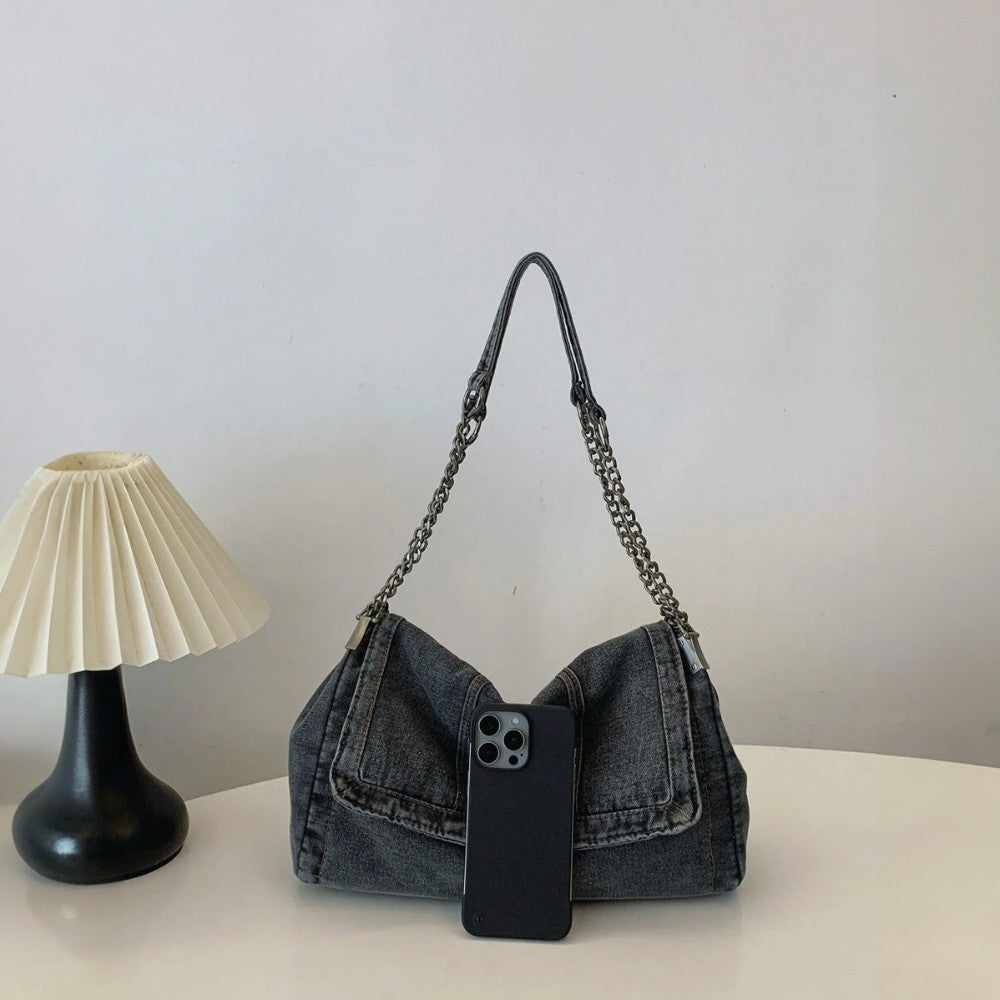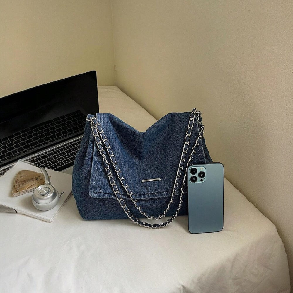 Notre sac Grace est fabriqué en denim de haute qualité, alliant style décontracté et durabilité. Conçu pour être suffisamment spacieux, il accueille facilement vos essentiels : ordinateur portable, maquillage et accessoires quotidiens.