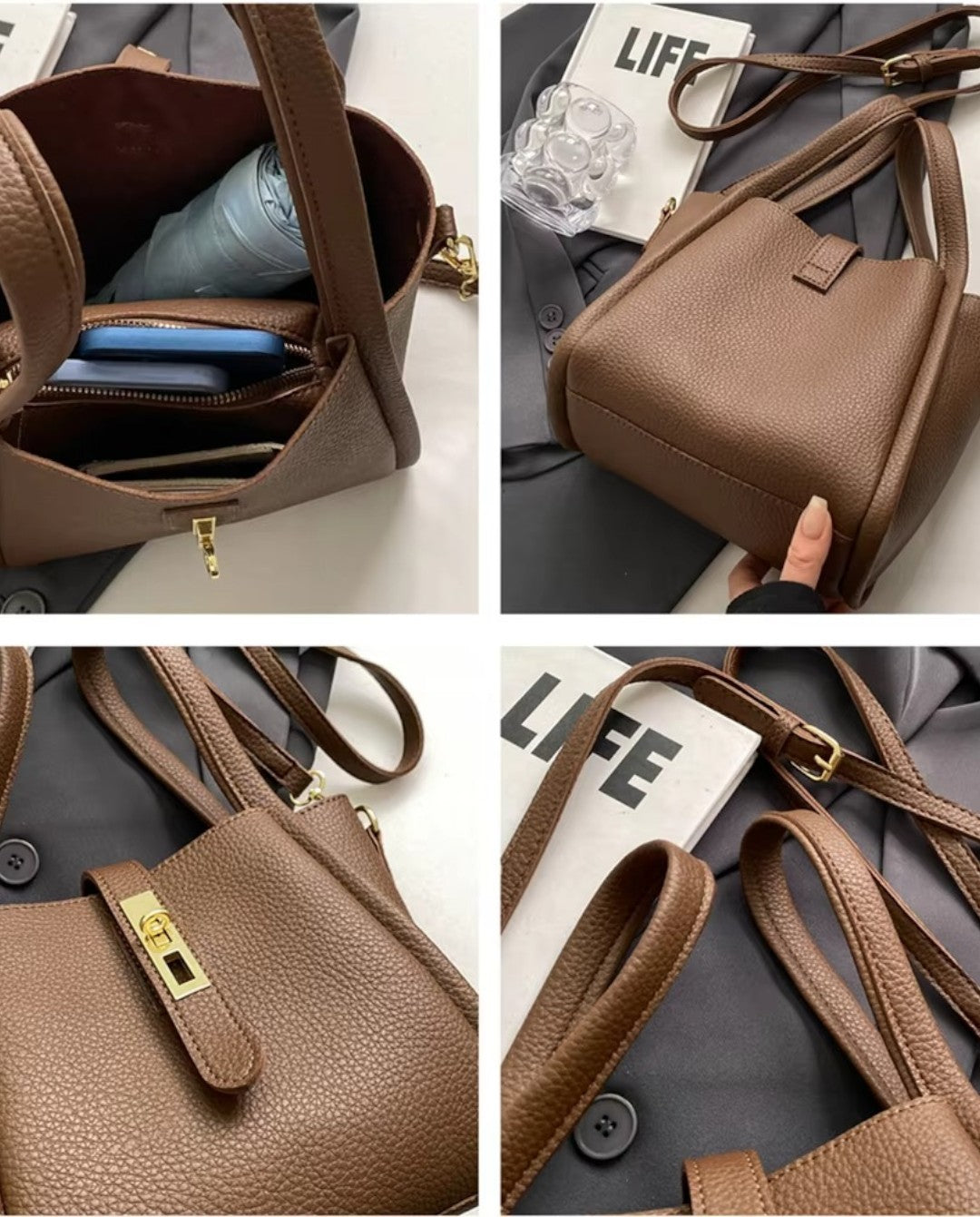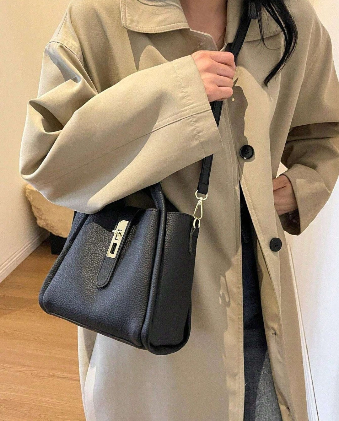 Le sac Vini est fabriqué en cuir véritable luxueux, alliant élégance intemporelle et durabilité. Son design compact mais spacieux est parfait pour transporter vos essentiels quotidiens et vous permettre de rester élégante et organisée.